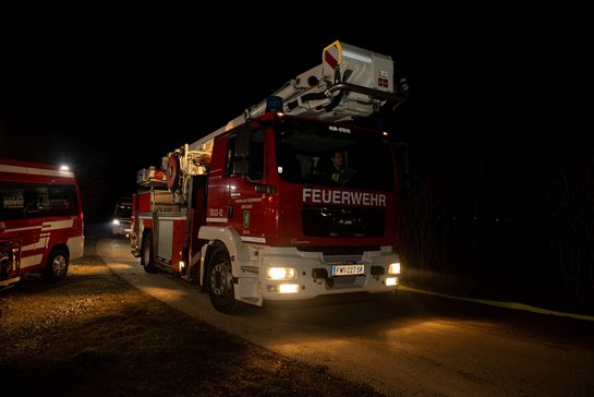 Umgehend wurden geeignete Aufstellflächen für die Einsatzfahrzeuge definiert, um ausreichen Platz für die Teleskopmastbühne (TMB) zu gewährleisten. Die ersten Atemschutztrupp bereiteten parallel dazu die Löschleitung zur Brandbekämpfung vor.