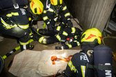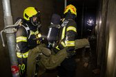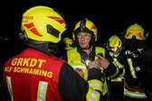 Gegen Ende der Übung wurde zusätzlich ein Atemschutznotfall simuliert. Dabei verlor ein Truppmitglied seine Kräfte und musste vom bereitstehenden Rettungstrupp rasch und professionell ins Freie gebracht werden.