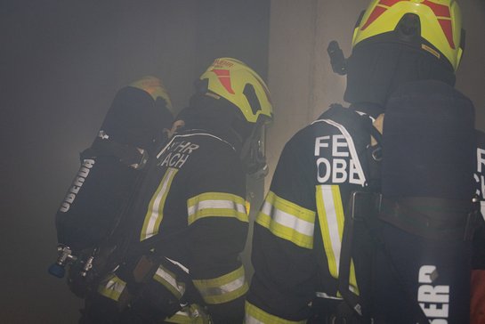 Der Vormarsch gestaltete sich äußerst herausfordernd: Dichter Rauch im Stiegenhaus führte zu beinahe Nullsicht und verlangte den eingesetzten Trupps höchste Konzentration und Professionalität ab.